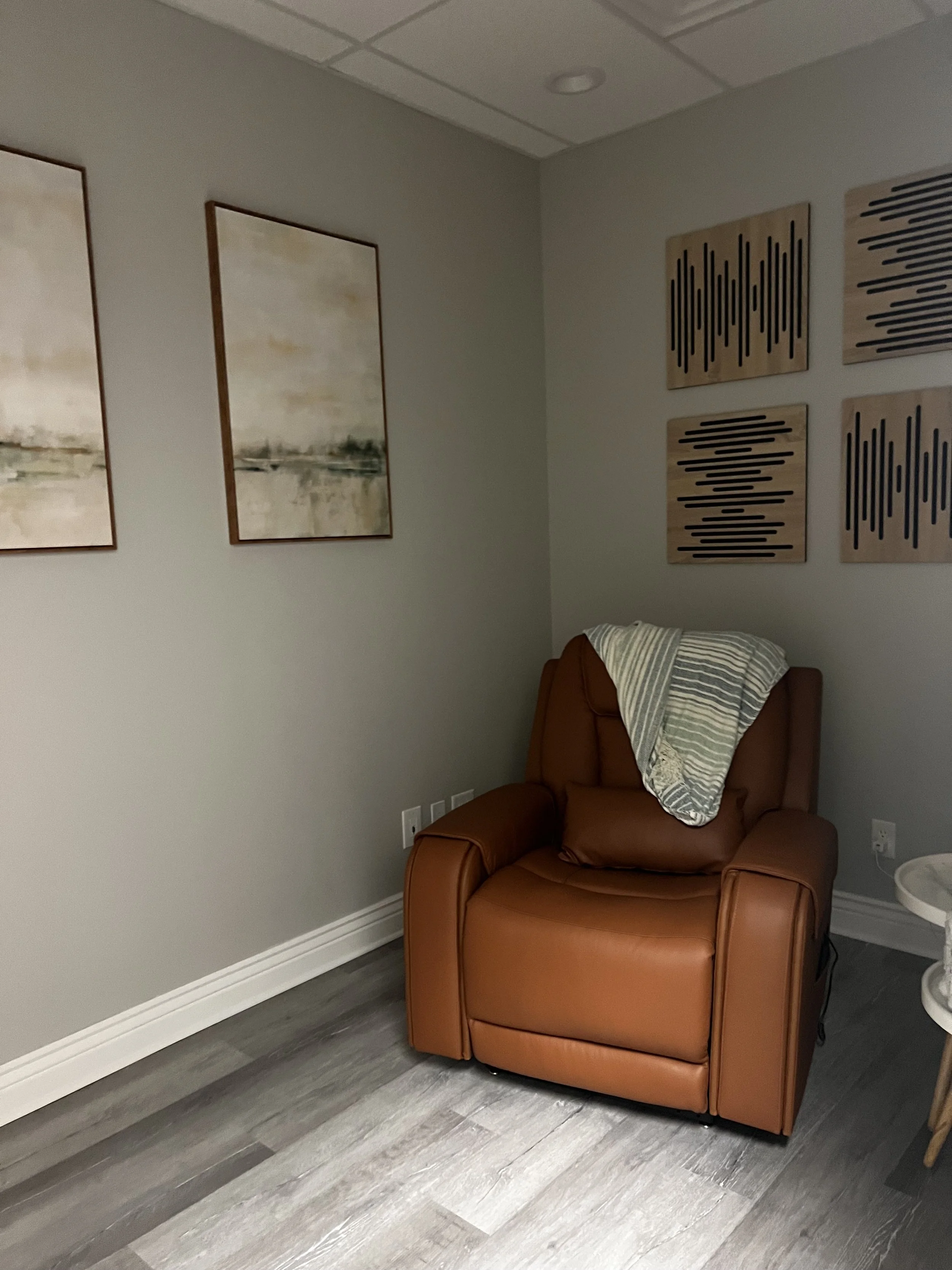 We offer private rooms for our patients during Spravato treatments. Each room is equipped with a fully-reclining heat and massage chair, galaxy light, soft blanket, and noise-cancelling Bluetooth headphones.